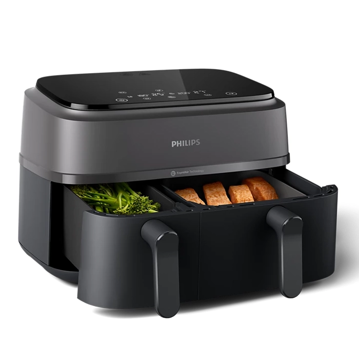 مناسب استفاده برای 10 تا 12 نفر است و میتوانید به صورت همزمان از دو سبد پخت دستگاه استفاده نمایید. سرخ کن فیلیپس ابتکار و نوآوری را وارد صنعت لوازم برقی خانگی کرد و تحولی عظیم در نحوه پخت و پز بدون روغن ایجاد نمود. به لطف طراحی سیستم جدید طبخ با به گردش درآمدن هوای داغ در این سرخ کن بدون روغن، غذا از داخل به خوبی پخته و از خارج ترد و لذیذ میشود. سرخ کن فیلیپس توانست حتی با یک قاشق روغن انواع مواد مثل مرغ، ماهی و سیب زمینی را سرخ کند. سرخ کن بدون روغن فیلیپس مدل 350 دارای دو محفظه مجزا برای پخت و پز است که میتوانید از محفظه بزرگتر برای وعده اصلی و محفظه کوچک برای طبخ مواد کنار غذا استفاده نمایید. این دستگاه ویژگیهای دیگری هم دارد که در ادامه به آنها میپردازیم.